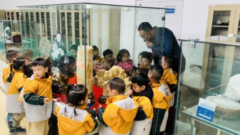 在博物馆中,孩子们参观到了来自几亿年前的古生物化石、玉石、矿物标本等地质标本,通过老师的讲解,小朋友们了解了形态各异、五颜六色的岩石是怎么形成的,恐龙蛋化石是如何保存至今的,树木是怎么成为“硅化木”(古生物学木化石)的,以及地球的演化过程,地震和火山爆发是怎么发生的等一系列有趣的地学知识,培养了小朋友们对地质学的兴趣,提升了观察力,激发了探索精神。