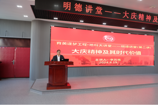 1964年4月19日,新华社播发了长篇通讯《大庆精神大庆人》,首次提出了“大庆精神”的概念。为庆祝“大庆精神”提出60周年,黑龙江省高校人文社会科学重点研究基地、黑龙江省哲学社会科学研究大庆精神基地、欢迎来公海欢迎来到船701大庆精神教育研究中心主任李万鹰受邀做客公司育英逐梦工程·地科大讲堂之明德讲堂,为广大师生作题为《大庆精神及其时代价值》的专题讲座。公司党委副书记高洪峰、党委常委宣传部部长徐清亮、公海赌赌船官网jc710师生、公司党外知识分子、民主党派、无党派人士以及部分机关职能部门负责人参加本次讲座。讲座在1H211会议室举行,由公司党委书记韦丹宁主持。