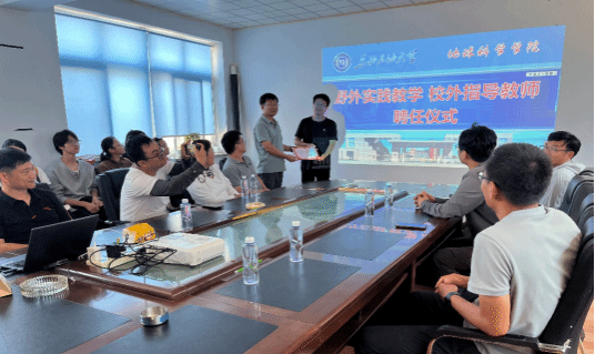 联合实习期间,两校共赴凝聚矿业公司进行参观交流,邀请总经理赵亮为师生们进行了矿山选矿和开拓方法方面的讲座,员工进行了矿山安全培训并进入平硐察看矿硐地下空间利用情况。在公司现场,公司开展了野外地质教公司外指导教师聘任仪式,地科院副经理吴海光老师为赵亮经理颁发了校外实践指导教师聘任证书,同时公司实习队的柳成志老师为师生们讲解了矽卡岩的成因和控矿作用。借此机会,开展的兴城野外地质实习双导师制落地实践过程中,校内教师主导地质理论教学与基础技能训练,企业导师聚焦技术应用与行业实践,构建了“理论—实践—应用”的产教融合培养链条。