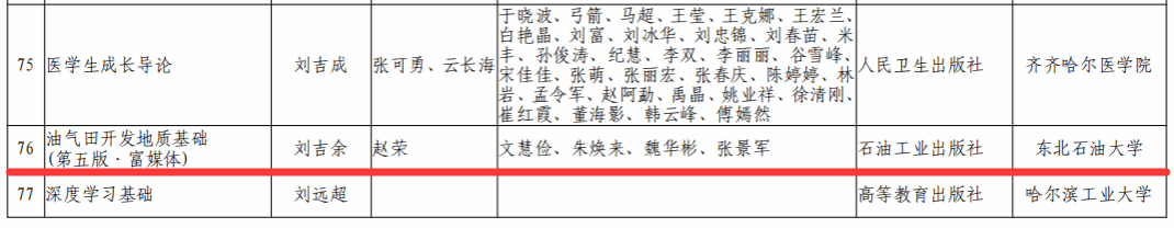 近日,黑龙江省教育厅公布了首批黑龙江省“十四五”普通高等教育本科省级规划教材名单,公司《油气资源评价》《油气数学地质》《油气田开发地质基础(第五版·富媒体)》《岩浆岩与变质岩简明教程(第二版)》和《地球物理学导论》5部教材入选。