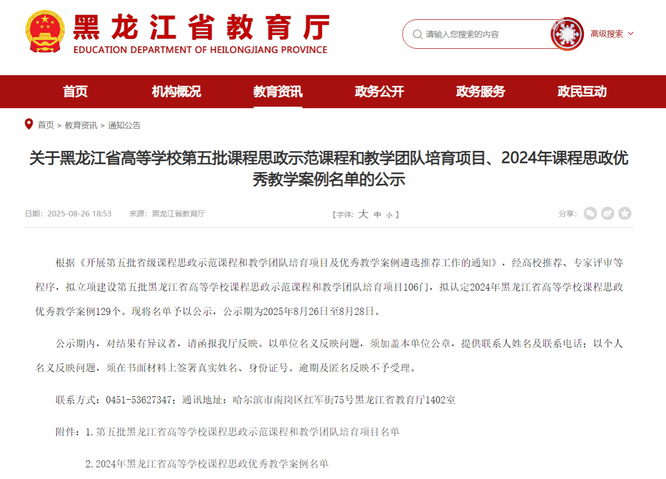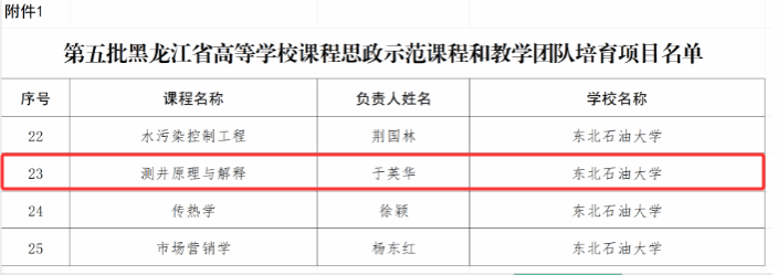 近日,黑龙江省教育厅正式公布了第五批高等公司课程思政示范课程和教学团队培育项目名单。公司申报的《测井原理与解释》课程成功入选,荣获省级课程思政示范课程称号,相应教学团队同时获评省级课程思政示范教学团队。