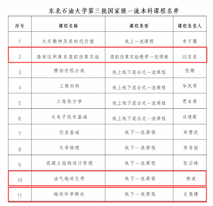 近日,教育部公示了第三批国家级一流本科课程认定结果。公司推荐的《陆相沉积体系虚拟仿真实验》《油气地球化学》《地球科学概论》三门课程成功获评国家级一流本科课程。