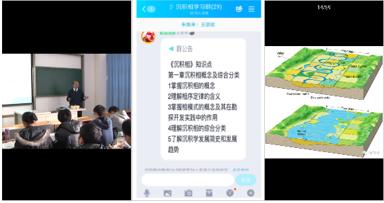 从左至右:国家级精品课《岩相古地理》、课前知识重点推送、课前沉积相图推送