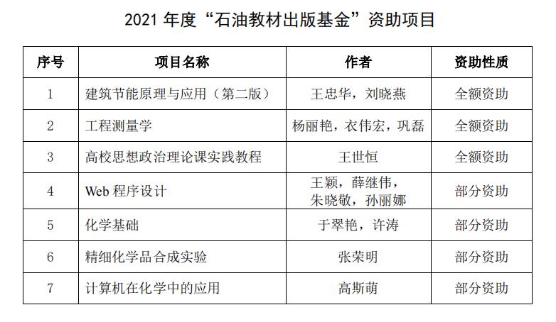 日前,石油工业出版社公布了《关于公布2021年度“石油教材出版基金”资助欢迎来公海欢迎来到船701项目的通知》。经公司组织申报、教务处择优推荐、石油教材出版基金管理办公室组织专家评审等环节,公司共7部教材入选2021年度“石油教材出版基金”资助项目,公司杨丽艳、衣伟宏、巩磊主编的《工程测量学》入选全额资助类。