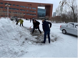 2021年11月8日-10日,一场突如其来的暴雪袭击了美丽的百湖之城大庆,路上积雪达到了近30厘米深,给市民的生活出行带来了很大的麻烦。为响应大庆市的清雪号召,2021年11学10日上午10点勘查技术与工程系教师党支部组织支部成员在公海赌赌船官网jc710门前到主干道方向进行了清雪志愿活动。支部成员纷纷放下手中的工作,拿着工具参与到清雪志愿活动中来。