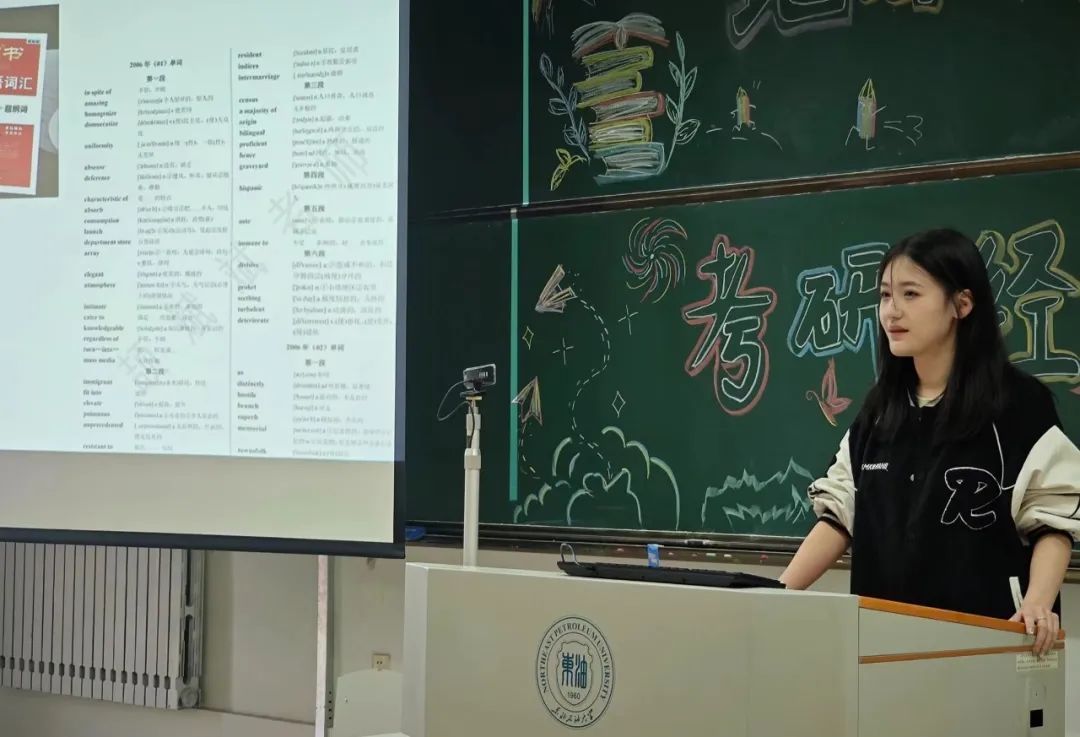 第三位进行分享的是刘维则同学,他以329分的成绩考入中国石油大学(北京)。刘维则主要就专业选择和备考规划提出了建议。首先,他对“选择学硕还是专硕”的问题进行了详细解答,具体阐述了两者的突出特点和不同。其次,他对公司员工考研专业选择进行了介绍,针对“勘探还是开发”的选择,他指出考研专业选择需要考虑专业适配度、对专业的兴趣度和未来工作计划等因素,要做到全方面考虑,理性决策。同时他针对专业课复习策略上提出了很多建议,并与同学们分享了优质的课程,供同学们学习。在分享的最后,刘维则学长向每一位学弟学妹寄语道:“功不唐捐,玉汝于成,希望每一位学弟学妹们都能成功上岸!”
