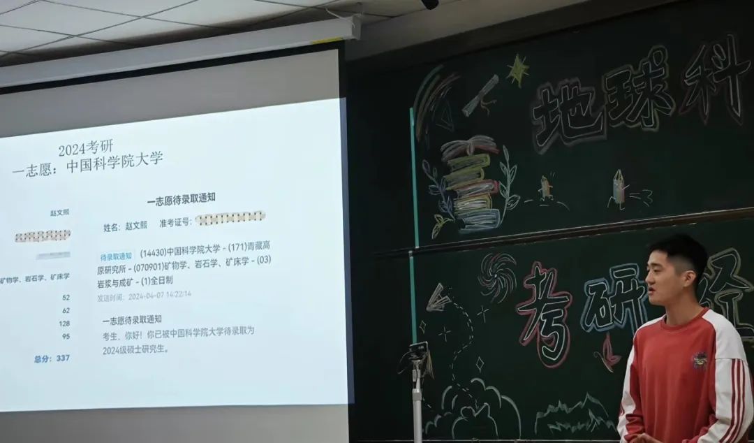 第二位为大家进行分享的是王祥同学,他以324分的成绩考入中国地质大学(武汉)。王祥分享了自己的考研故事并就心态提出建议。首先,我们要在备考前询问自己为何要考研,是否真正做好了心理准备。其次,我们要注意心态调整。考研面对的同辈压力和课业压力不可避免,我们要高效学习,更要避免情绪内耗,稳住心态。