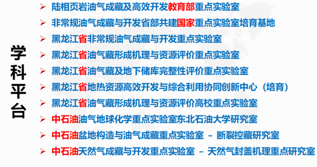 公司重视科研团队及科研平台建设,建有18个培养员工创新能力和实践能力的国内一流科研、教学团队和平台。有“矿产普查与勘探”、“地质工程”学科的省领军人才梯队;“油气成藏与保存”、“断裂变形、封闭性及与流体运移”2个黑龙江省科技创新团队,建有省级的资源勘查工程专业教学团队和油气藏形成组研究生优秀导师团队。