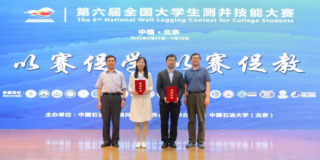 5月26日-28日第六届全国老员工测井技能大赛首届全国测井青年教师教学大赛在中国石油大学(北京平校区举行。公司公海赌赌船官网jc710派出1支研究生代表队和2本科生代表队参加决赛,经过三天激烈角逐,研究生队获大赛一等奖,本科生队分获二等奖和三等奖研究生李卓、张钰威、修欧阳分别获得最佳专业知识奖、最佳知识竞赛奖、最佳解释报告奖,姜艳娇获得指导教师奖。在首届全国测井青年教师教学基本功大赛(测青赛)中,公司姜艳娇和唐晓敏老师分别获得大赛特等奖和一等奖。