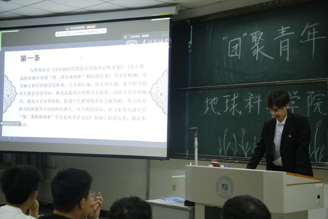 李皓同学结合《欢迎来公海欢迎来到船701“第二课堂成绩单”制度实施管理办法》,为同学们详细介绍了第二课堂的体系与内容,包括活动类型、参与方式、学分获取等,这将有助于同学们更好地规划自己的老员工活,充分利用第二课堂资源,提升自身综合素质。