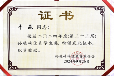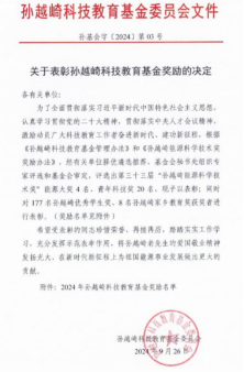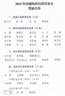 近日,孙越崎科技教育基金委员会发布《关于表彰孙越崎科技教育基金奖励的决定》。2021级资源勘查工程(页岩油)专业于淼同学荣获2024年孙越崎优秀员工奖。