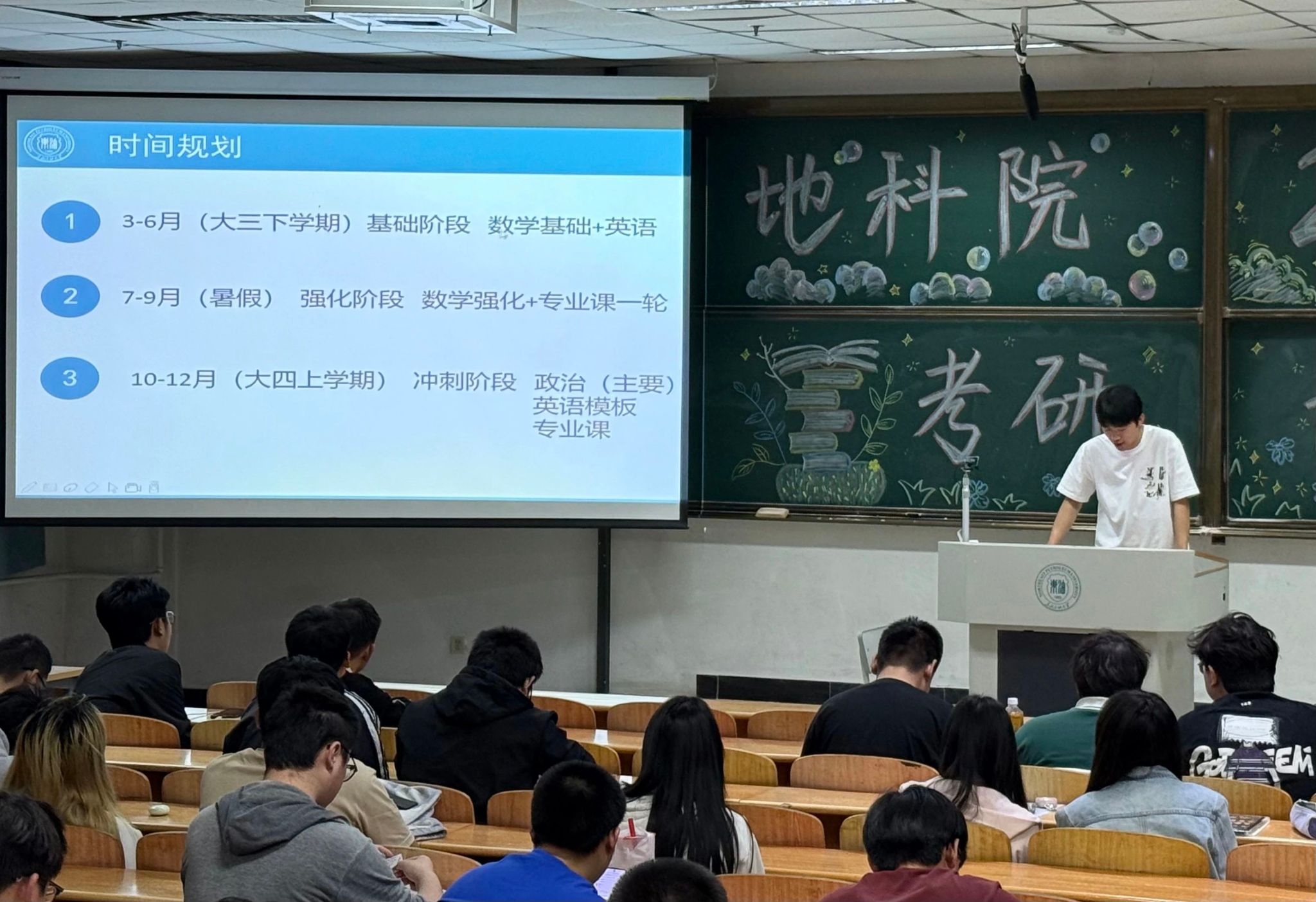 最后,辅导员李海悦立足员工成长陪伴者的角色,结合自身考研经历,从备考策略到心理调适层层剖析,用温暖真挚的话语为同学们注入前行力量。